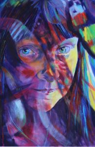 Airbrushed acrylic ink, pastel & coloured pencil on Paper